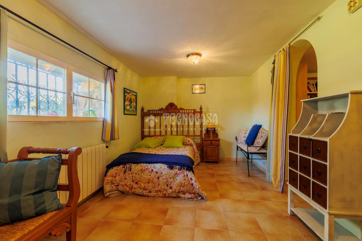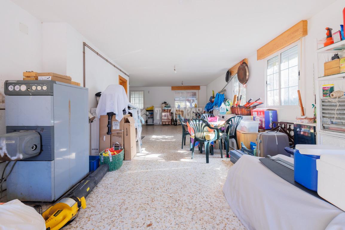 La parcela combina zonas soladas con caminos de baldosas muy pintorescos y una parte ajardinada con césped natural, árboles y vegetación cuidada al detalle. Nada más entrar, encontramos la entrada de coches exterior y un amplio garaje de unos 55 m2, con acceso directo tanto al interior de la casa como a la parte trasera del terreno. La vivienda está rodeada por un lateral de paso pavimentado y, en el otro, por la zona ajardinada que se abre en forma de 'L', creando un entorno verde y muy agradable.