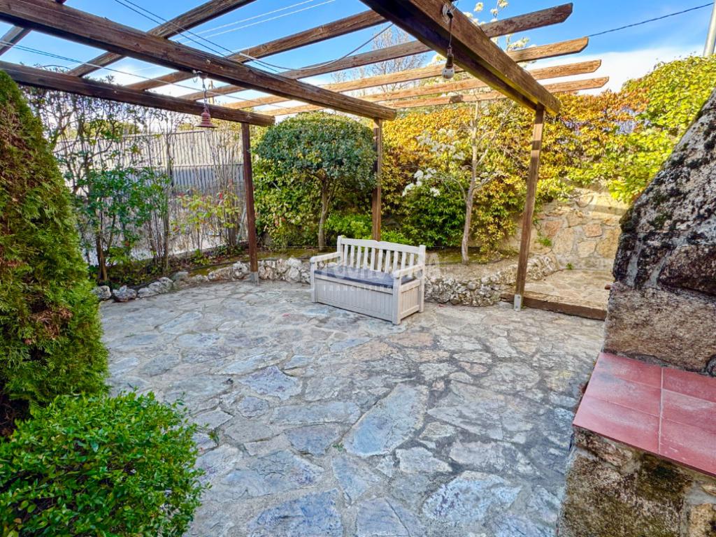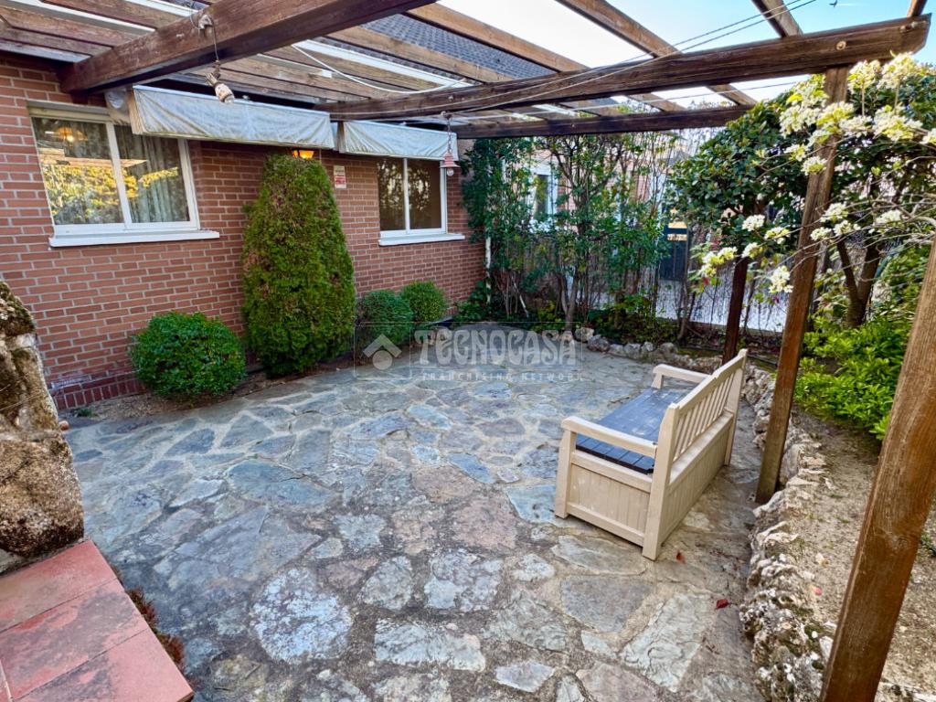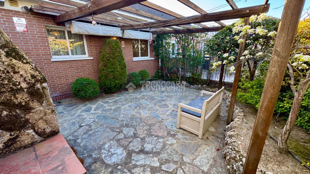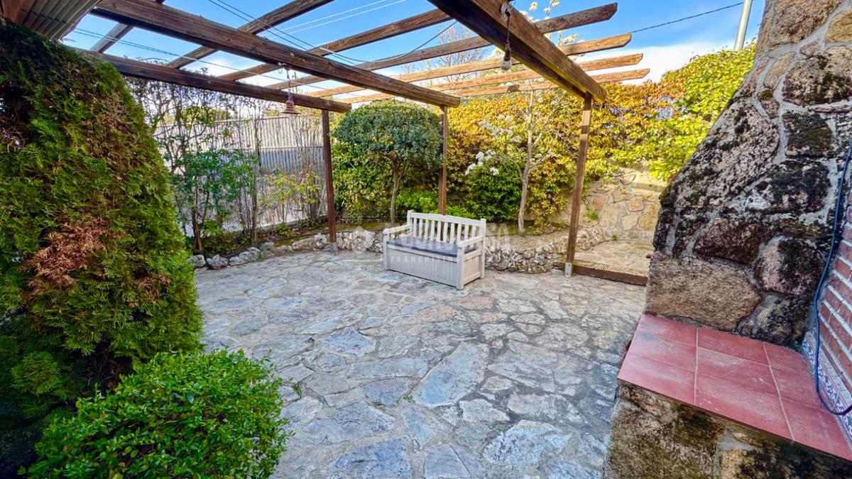 En el exterior, la parcela está pensada para disfrutar: jardín delantero, garaje acondicionado y revestido en madera, y un agradable patio trasero con pérgola con toldos y zona de barbacoa, ideal para reuniones y momentos de ocio.