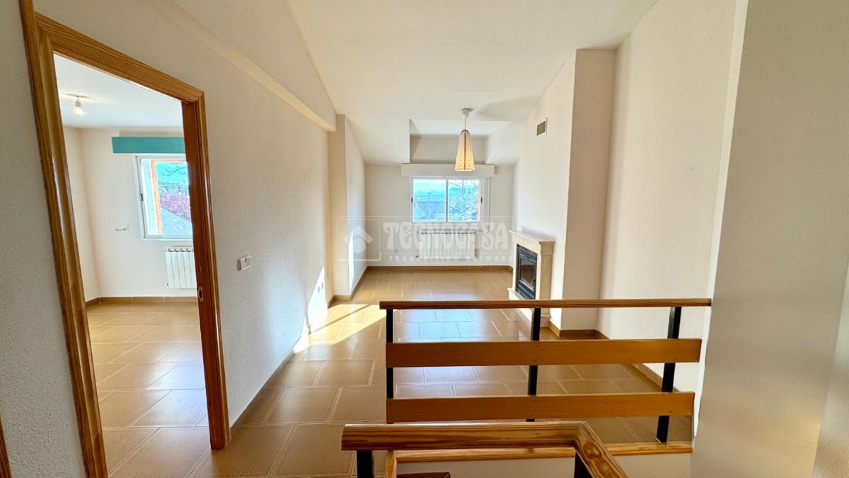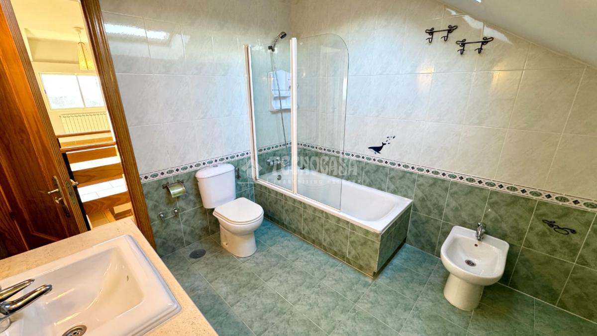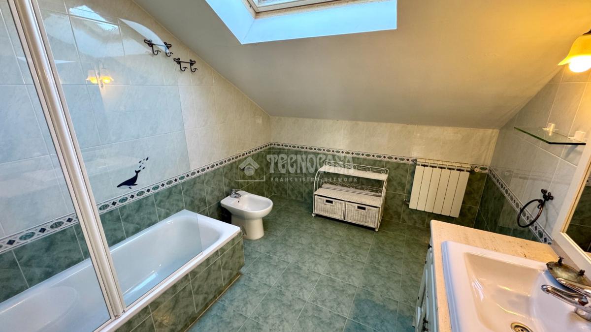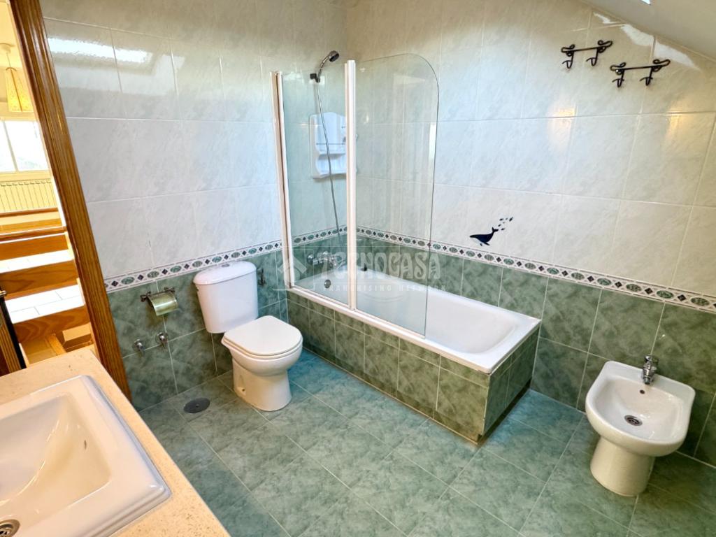 En la planta superior, la vivienda ofrece un espacio diáfano actualmente utilizado como segundo salón con chimenea, con posibilidad sencilla de transformarlo en un gran dormitorio independiente. Completan esta planta dos dormitorios amplios, muy luminosos, ambos con armarios empotrados, y un segundo baño completo de gran tamaño con bañera y ventana tipo Velux.