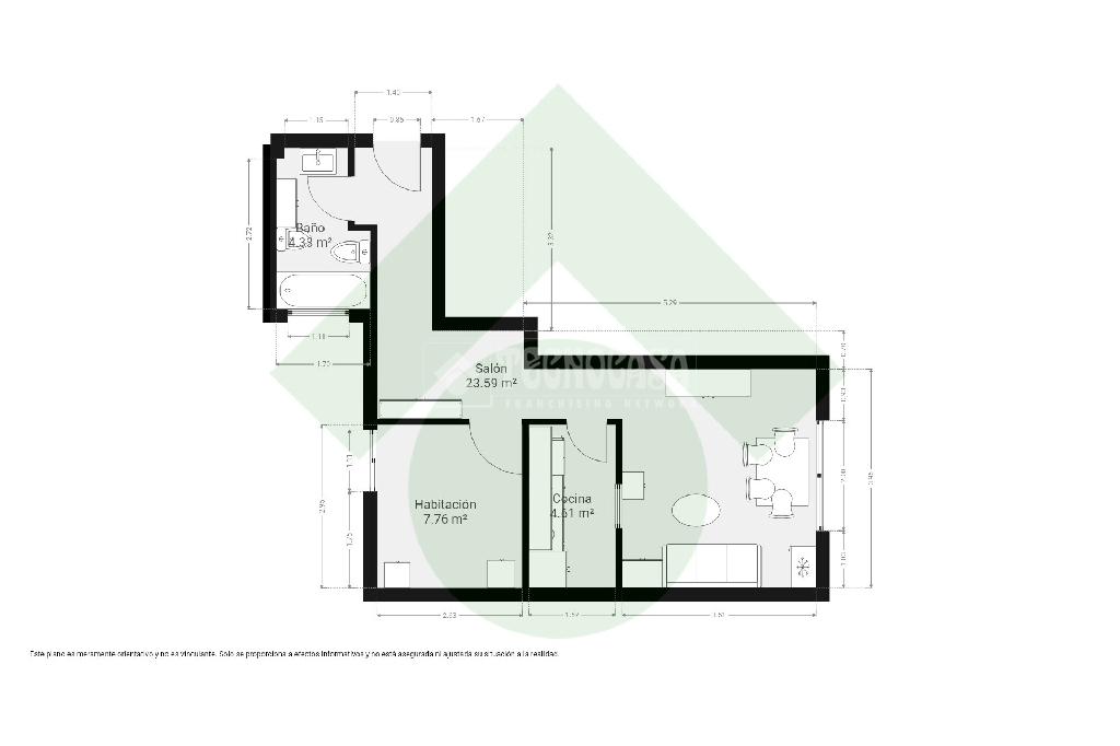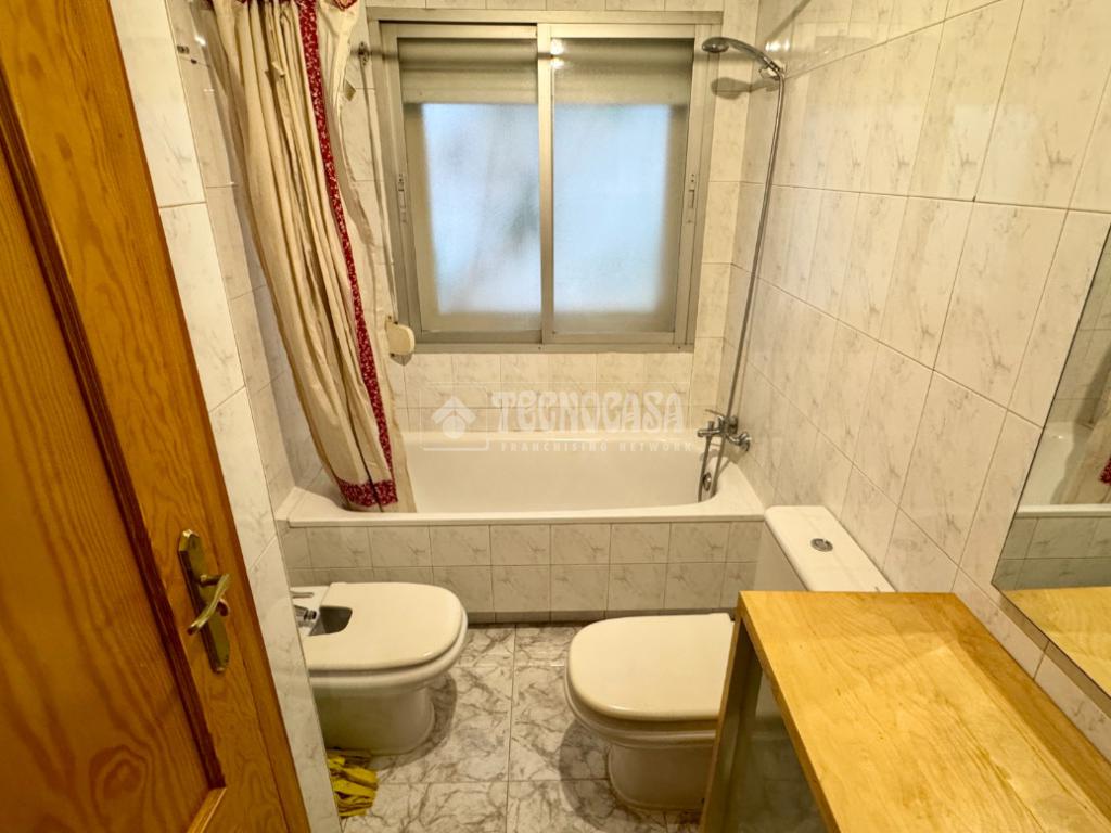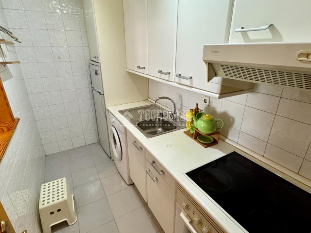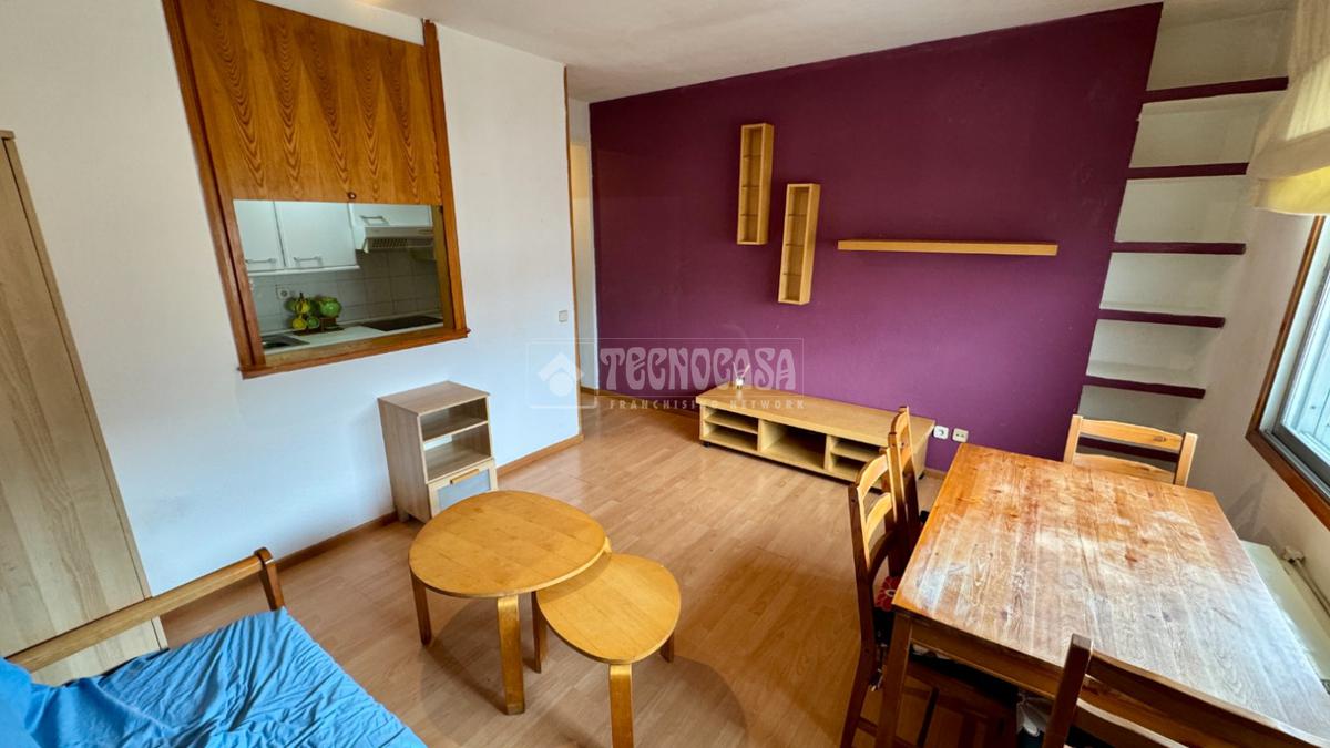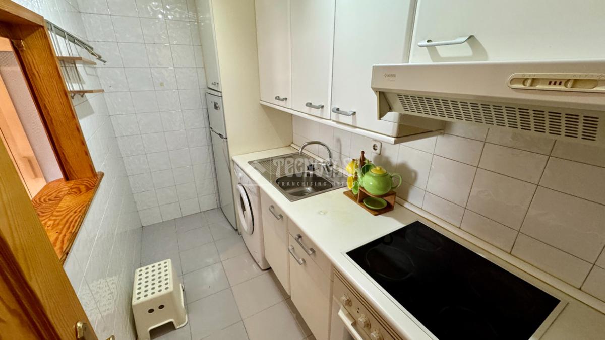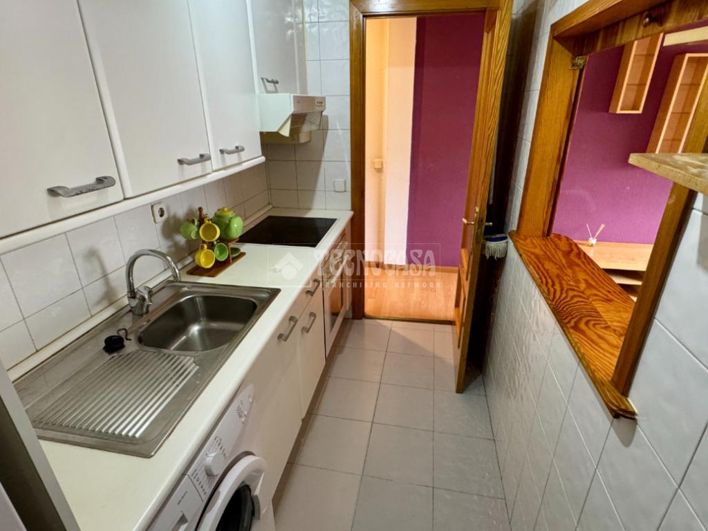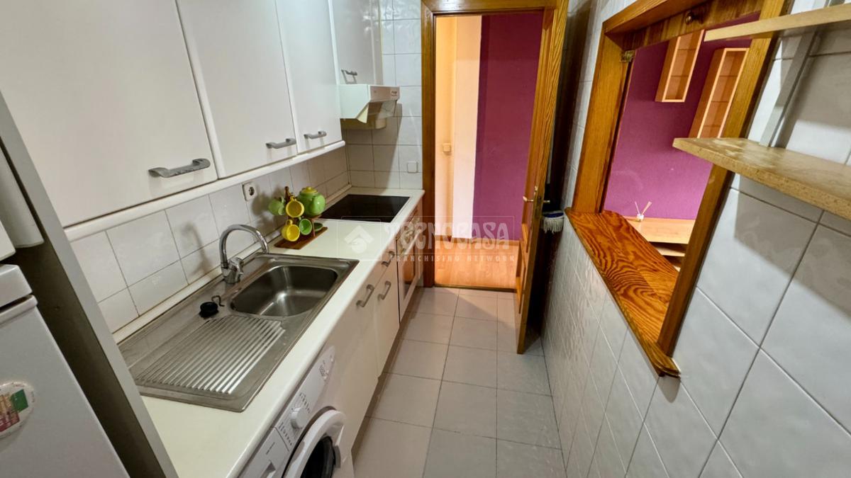 La vivienda se distribuye en pasillo recibidor, baño completo con bañera y ventana, dormitorio con armario empotrado renovado, cocina independiente con pasaplatos y un luminoso salón-comedor. El piso cuenta con suelo de tarima, dobles ventanas y calefacción eléctrica mediante acumuladores de calor, lo que garantiza confort durante todo el año.